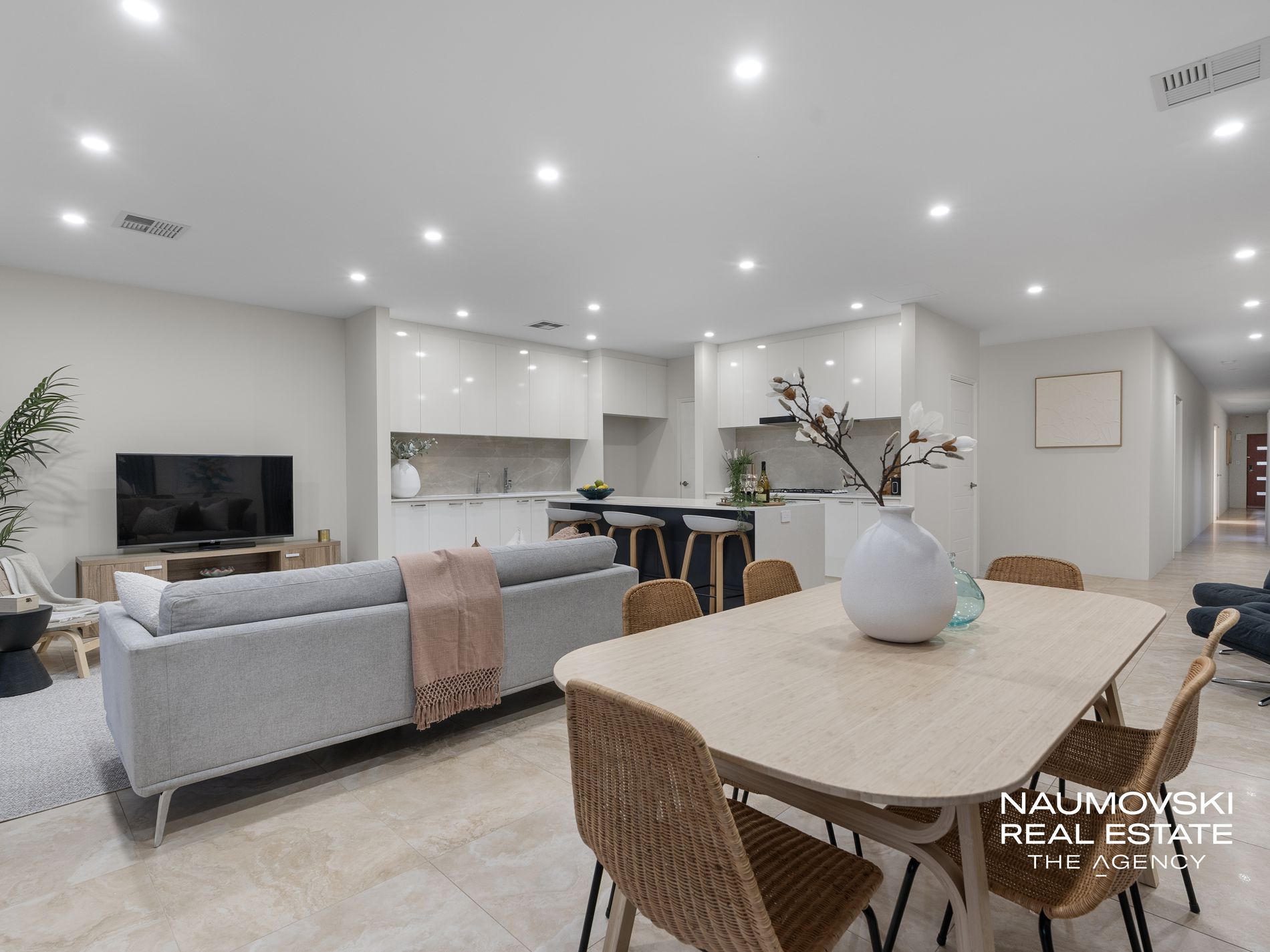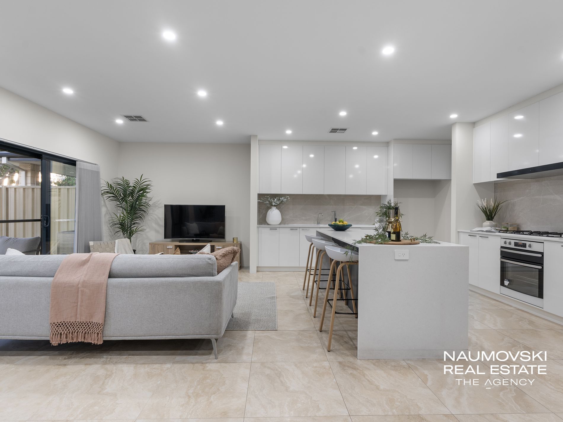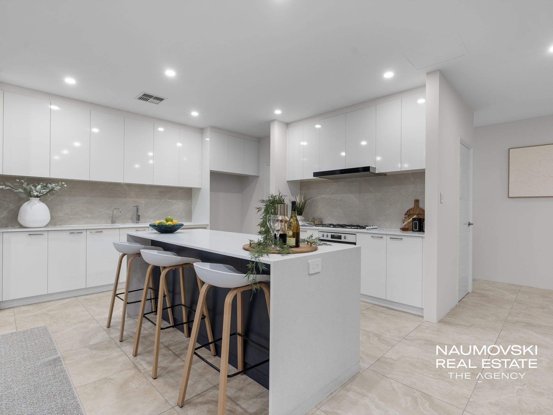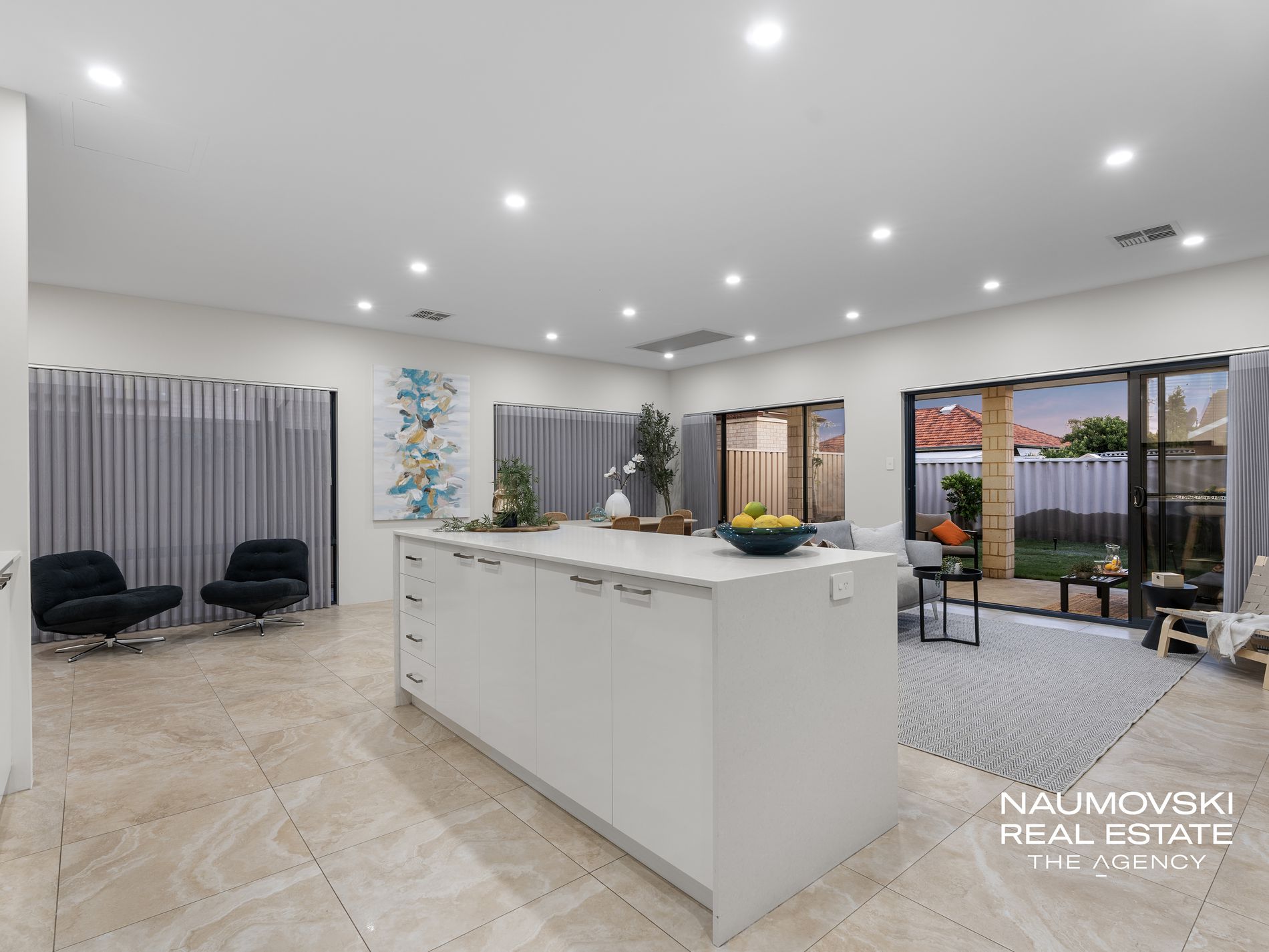 Step into a modern masterpiece at 12B Marda Way, Nollamara, where style, comfort, and convenience come together in perfect harmony. This immaculate five bedroom (or 4 bed + theatre), two bathroom home, built in 2020, looks as fresh as the day it was completed. From the moment you enter, you'll be captivated by the beautiful open plan living area, where natural light pours in through expansive windows, creating a bright and welcoming atmosphere. The heart of the home is the stunning kitchen, boasting waterfall stone benchtops, stainless steel appliances, and an abundance of storage, perfect for entertaining friends or preparing family feasts while keeping an eye on the kids.