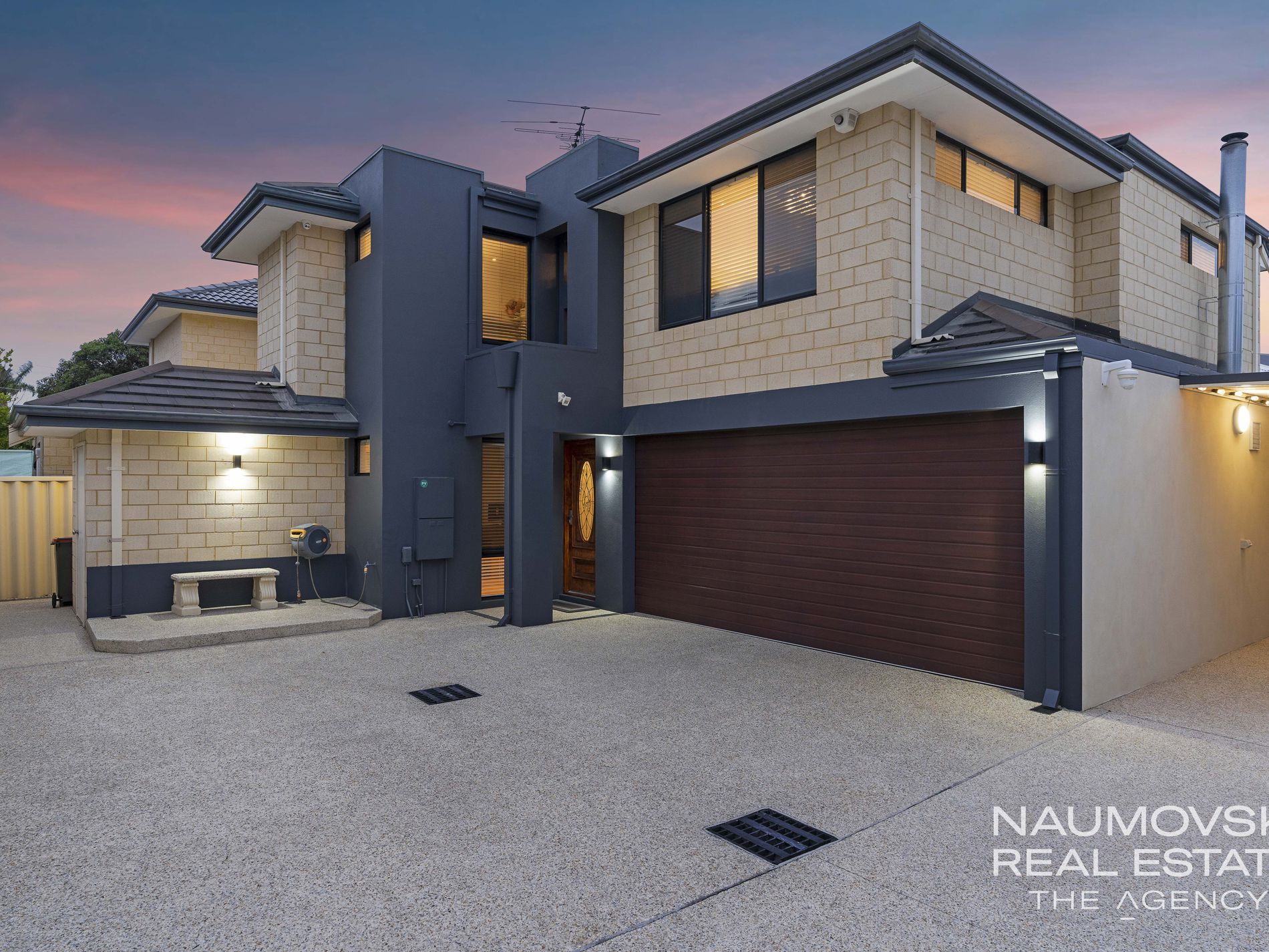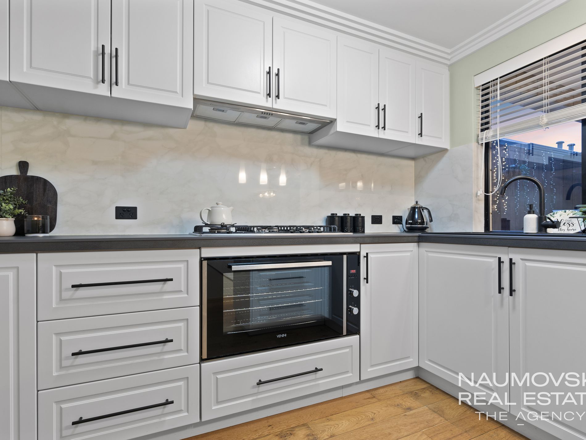 Downstairs welcomes you with a versatile guest bedroom or home office complete with mirrored sliding robes and a third bathroom. Stunning timber flooring flows throughout the home, leading to the chef's kitchen featuring quality appliances and a stylish tiled splashback. High ceilings, feature lighting, and a generous open plan living and dining zone create a bright and inviting atmosphere.