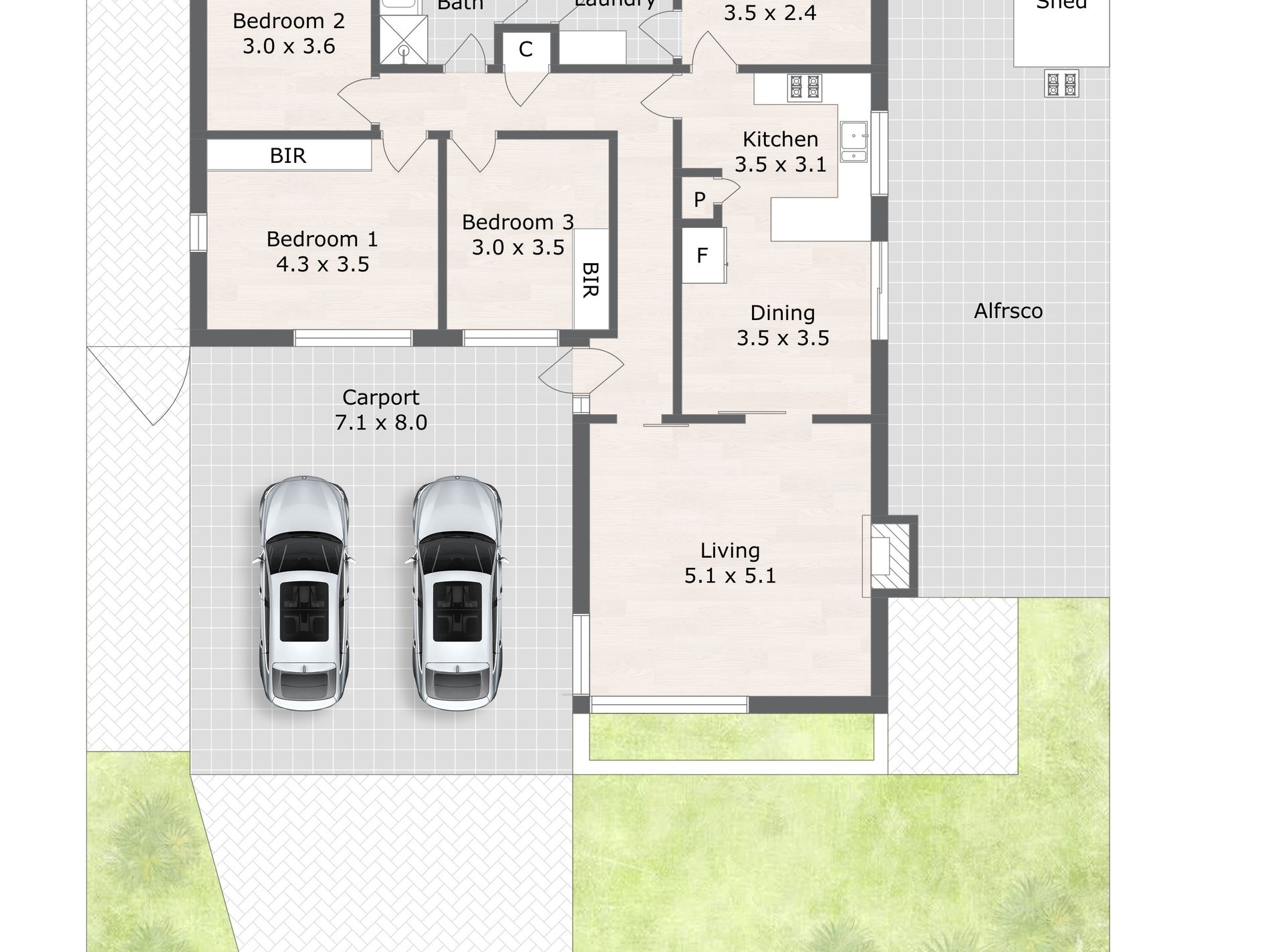 Three spacious bedrooms, all with built-in robes